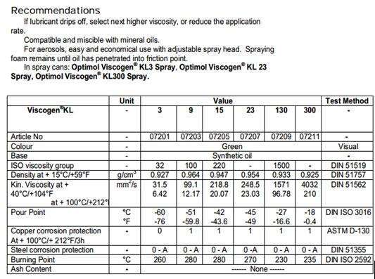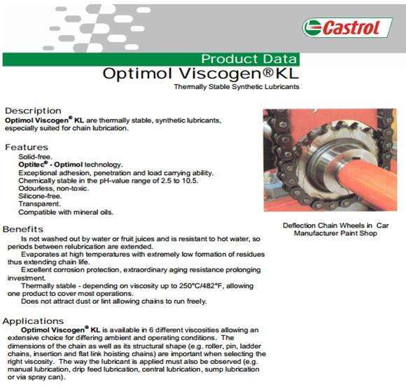 viscogen KL是合成鏈條潤滑油,特别适用于鏈條潤滑。