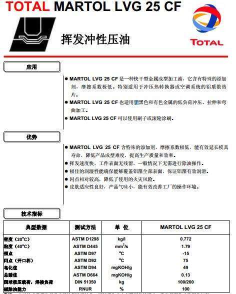 道達爾MARTOL LVG 25 CF揮發性沖壓油