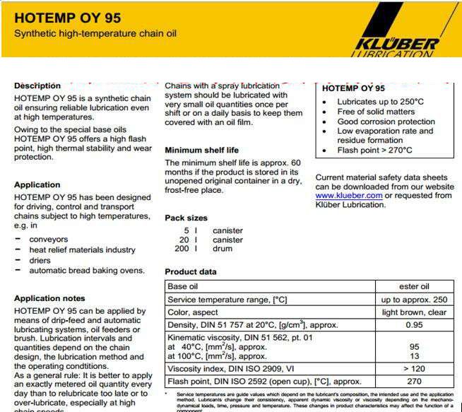 合成高溫鏈條油,即使在高的溫度下(xià)可靠地潤滑。 通過選擇特定的基礎油HOTEMP OY 95高閃點達到。 在同一(yī)時(shí)間(jiān)繪制HOTEMP OY 95是一(yī)個(gè)良好(hǎo)的熱性能(néng)和耐磨損保護。hotemp 95合金(jīn)是一(yī)種合成的鏈