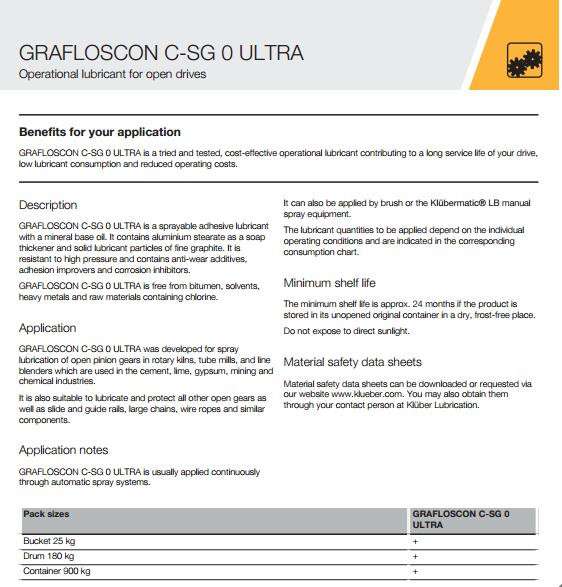GRAFLOSCON C-SG 0 ULTRA是一(yī)個(gè)成熟的,符合成本效益的潤滑劑,以确保您的驅動器(qì)的長壽命低(dī)的潤滑油消費量,從而有助于降低(dī)運營費用。
