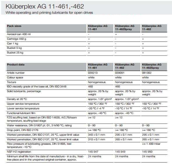 KluberplexAG 11-461和11-462鋁複合皂塗抹的膠粘劑潤滑油,礦物油,白色固體(tǐ)潤滑劑的基礎上(shàng)。 它們是高度耐用的,并具有優良的耐腐蝕特性。
