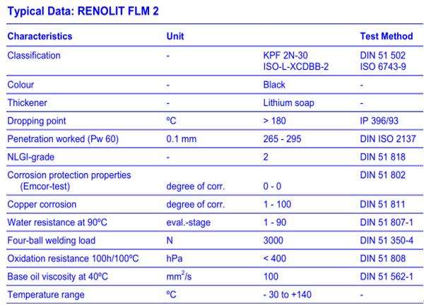 RENOLIT FLM2 基礎上(shàng)一(yī)個(gè)特殊的礦物油并含有固體(tǐ)潤滑劑的包