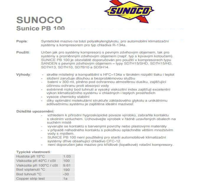 - SUNICE PB 100不适用于汽車空調含制冷劑CFC-12系統之前。