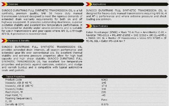 SUNOCO DURATRANS FULL SYNTHETIC TRANSMISSION OIL