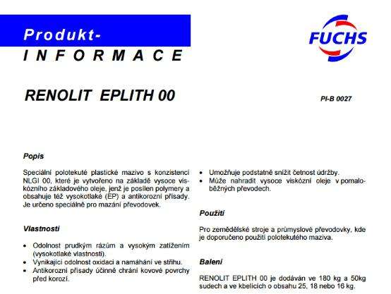 RENOLIT EPLITH 00礦物油為(wèi)基礎,含有抗氧化(huà)和極壓添加劑,允許它被用于長時(shí)間(jiān)在高溫和艱巨的負載條件下(xià),預計。 應用範圍: RENOLIT EPLITH 00建議(yì)在蠕蟲的潤滑劑,螺旋錐,螺旋和直齒齒輪。 它允許延長維護周期。描述