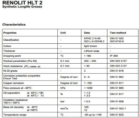 RENOLIT HLT 2是機械高度可裝載的,是穩定的揉,并提供防腐蝕保護,