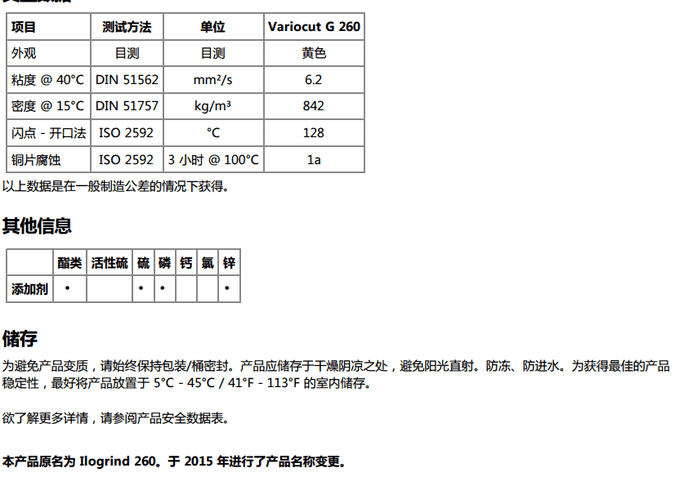 嘉實多 Variocut G 260(原名 Ilogrind 260)是一(yī)款不含氯、不含重金(jīn)屬的低(dī)粘度油性切削液。