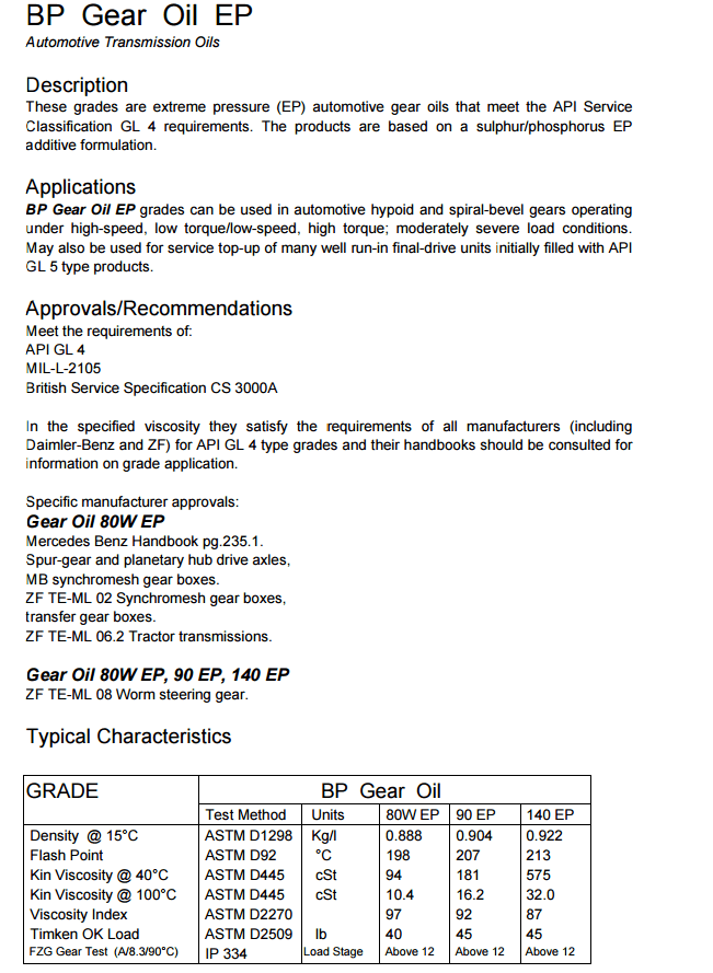BP齒輪油極壓等級可用于汽車準雙曲面齒輪和螺旋錐齒輪的操作(zuò)